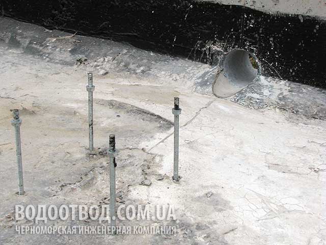- Вставляем водосточную трубу в заранее подготовленое отверствие