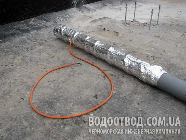 - Монтируем саморегулирующий кабель на водосточную трубу