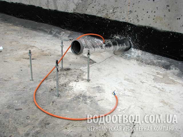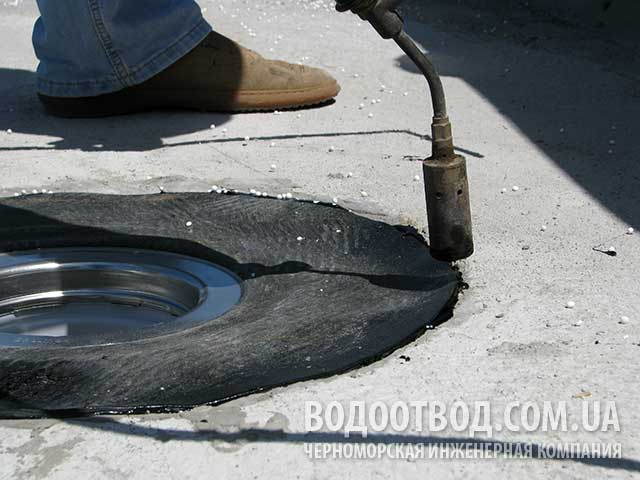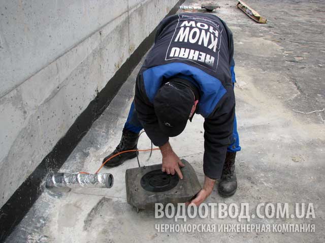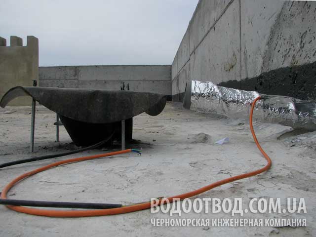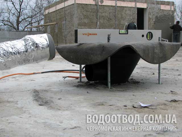 - Выставляем воронку кровельную для неэксплатируемой кровли в уровень
