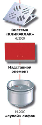 Все новые решетки из нержавеющей стали являются травмобезопасными, а система «Клик-Клак»о беспечивает бесшумность, если вы наступаете на трап. В надставные элементы с решеткой размером 120х120 мм можно устанавливать «сухие» сифоны HL2000, которые успешно применяются и эксплуатируются там, где есть опасность пересыхания водяного затвора у трапов (теплые полы, технические помещения, общественные санузлы и т. д.).