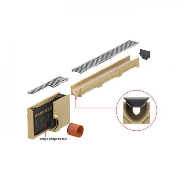 Гладкая поверхность полимербетона в сочетании с V-образной формой канала увеличивают скорость потока воды, обеспечивая тем самым улучшенную самоочистку канала. Специальные ребра жесткости способствуют дополнительной устойчивости канала к нагрузкам и гарантируют надежность. Срок службы системы из полимербетона - не менее 50 лет. Канал сертифицирован в соответствии с европейскими нормами EN 1433 и предназначен для монтажа в местах, где возможно движение легковых автомобилей.