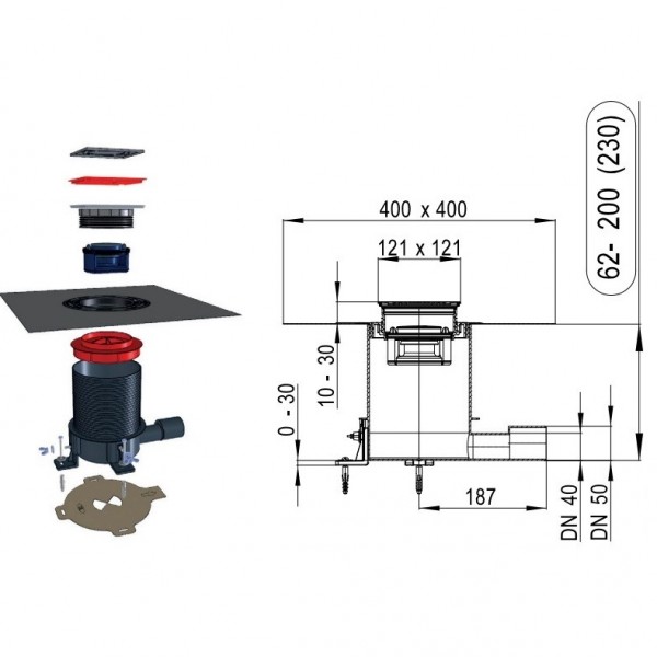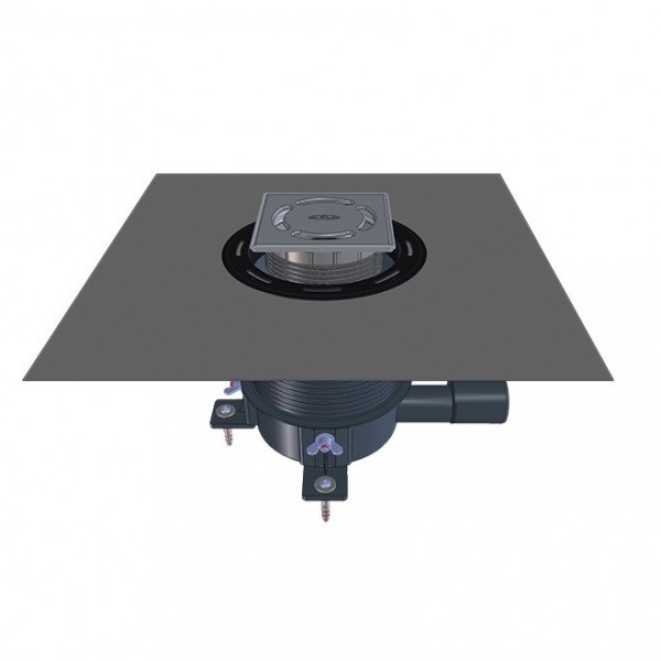 Душевой трап "Primus blue", в комплект входит "СУХОЙ" сифон, гидроизоляционный комплект для жидкой гидроизоляции, монтажные уголки для регулировки по высоте, монтажная заглушка и надставной элемент с подрамником.