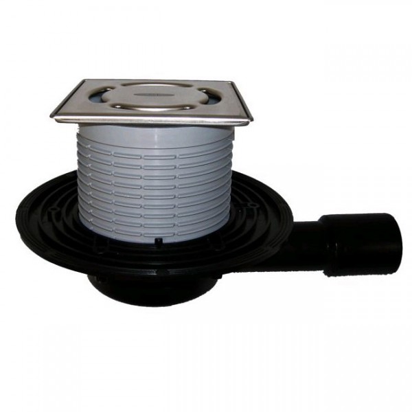Трап для внутренних помещений DN40/50 с горизонтальным выпуском, с фланцем, с надставным элементом 10-80мм, с подрамником из нержавеющей стали 121 х 121мм, с системой фиксирования напольных решёток Klick-Klack, с решёткой из нержавеющей стали 115 х 115мм, с "СУХИМ" сифоном PRIMUS, высота гидрозатвора 30мм. Строительная защита в комплекте. Высота монтажа 57мм.