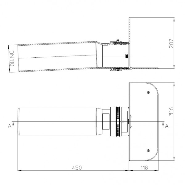 Парапетная воронка с фланцем и отводящей трубой из ПП DN100