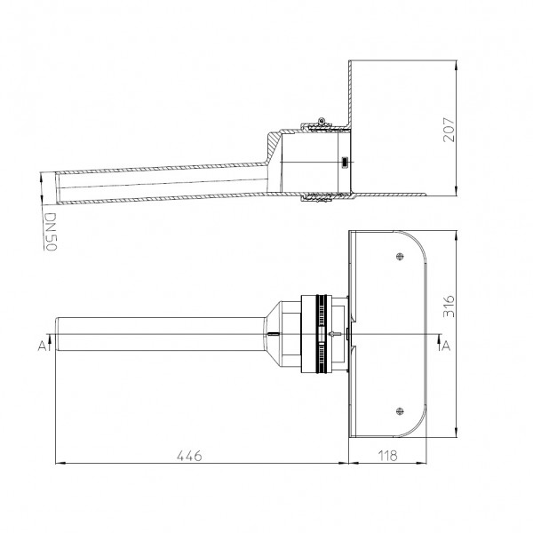 Парапетная воронка с фланцем и отводящей трубой из ПП DN50