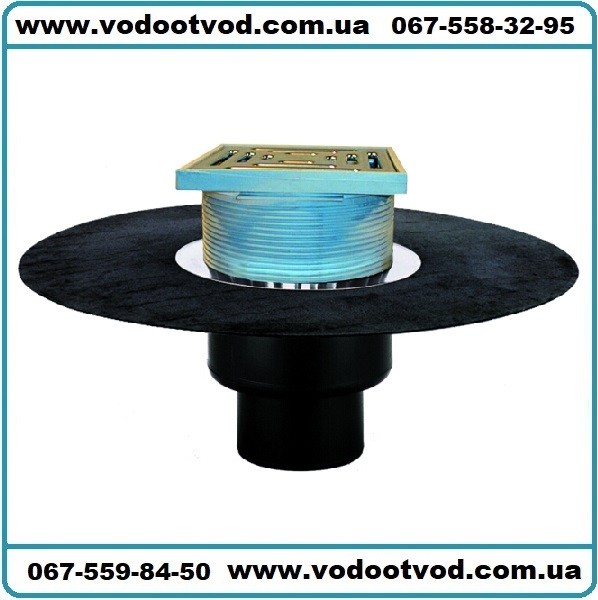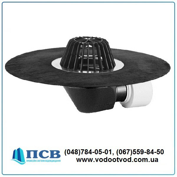 Кровельная воронка DN75/110 горизонтальный с битумным полотном.