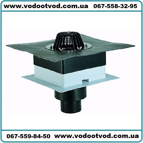 Кровельная воронка с листвоуловителем, с теплоизоляцией, с гидроизоляционным полимербитумным полотном 500мм и подогревом (10-30Вт/230В).