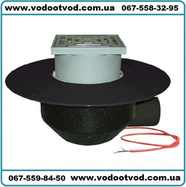 Воронка для эксплуатируемой кровли, с теплоизоляцией, с полимербитумным полотном 500мм и подогревом (10-30Вт/230В).
