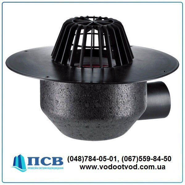 Кровельная воронка с горизонтальным выпуском и ПП-фланцем.