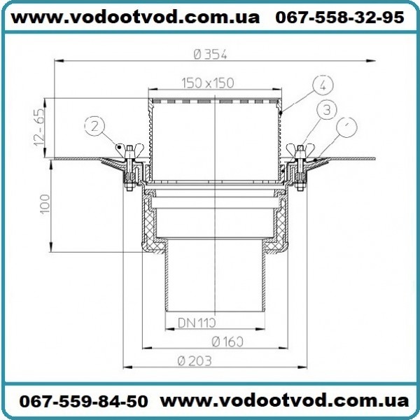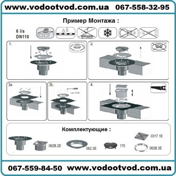 Воронка для плоских кровель, вертикальный выпуск с теплоизоляцией, с обжимным фланцем и зажимным из нержавеющей стали для прикрепления уплотнительных пленок, со снимаемыми насадными подрамниками 12 - 65 мм / 148 х 148 мм и решеткой из нержавеющей стали 137 х 137 мм. Строительная защита во время монтажа в комплекте.
