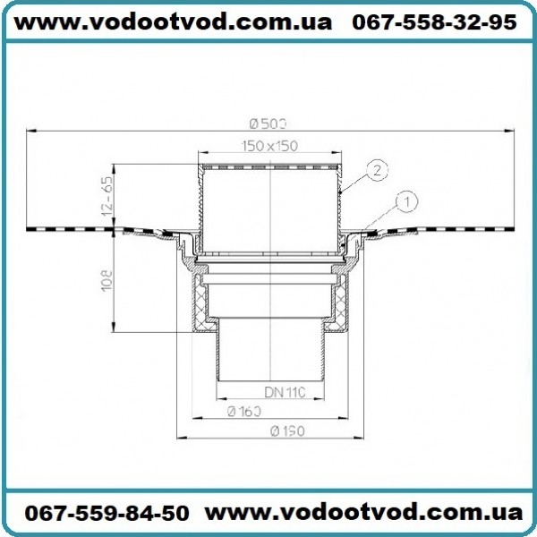 Воронка для плоских кровель вертикальный выпуск с теплоизоляцией, с приваренным битумным полотном d 500 мм, в качестве идеального соединения к битумным кровельным уплотнениям, со снимаемыми насадными подрамниками 19 - 65 мм / 148 х 148 мм и решеткой из нержавеющей стали 137 х 137 мм. Строительная защита во время монтажа в комплекте.